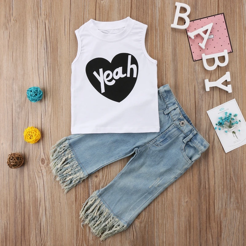 Buy Baby Kids Girls Sleeveless T-shirt Vest Top + Tassel Jeans Denim Pants Outfits Set Clothes Right Here and Right Now Just for USD US $10.07, Price will be rise up at any time without notification and I cant guaranted that the stock is still available tommorow or next hour. So Please Save It Now!